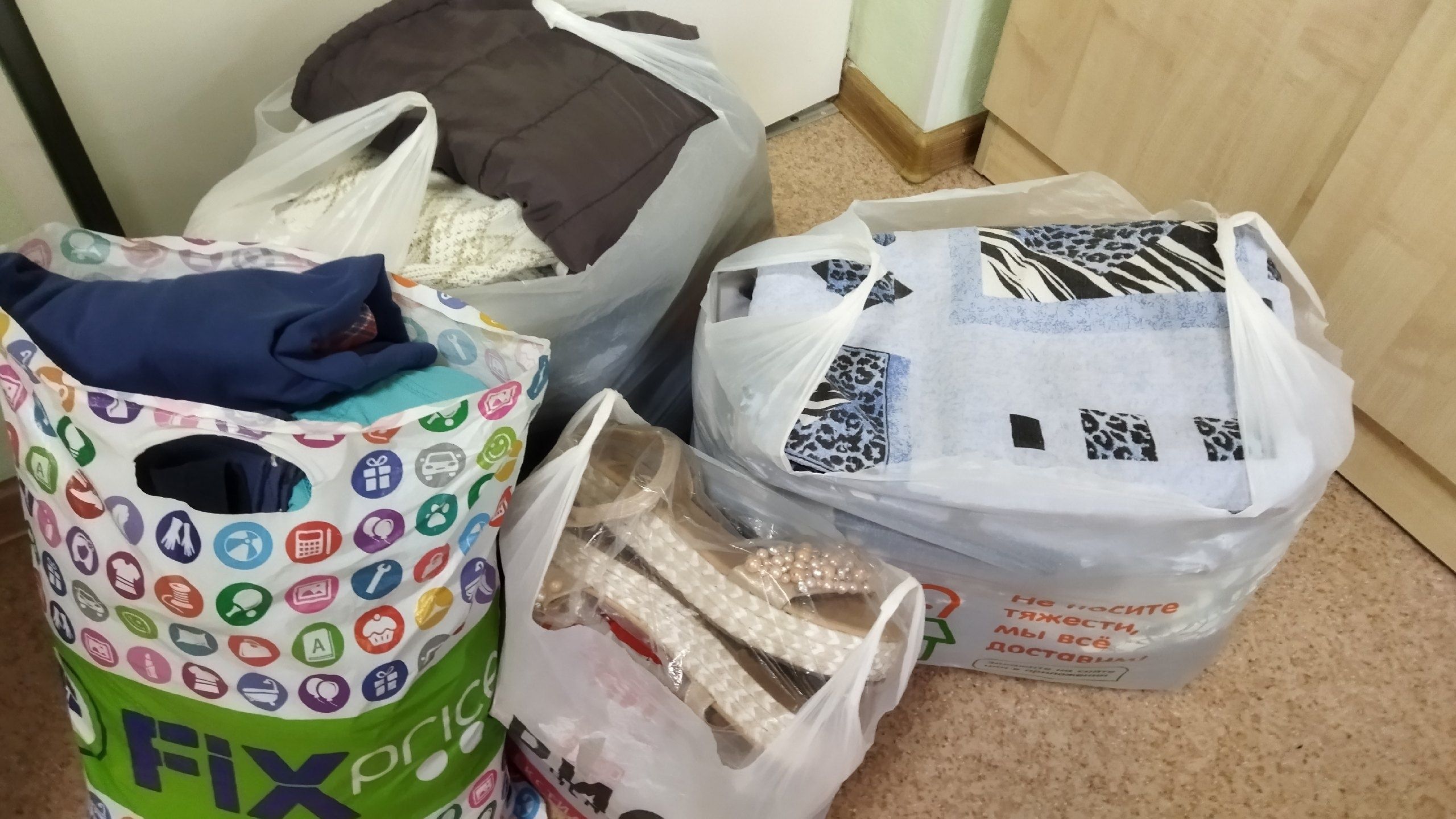 - по сбору вещей для людей, находящихся в трудных жизненных ситуациях, в которой мы отправили около 30 пакетов с: одеждой и обувью, занавесками и постельным бельем, книгами и игрушками, посудой, и даже памперсами для взрослых ! Которые, как выяснилось, были очень нужны !